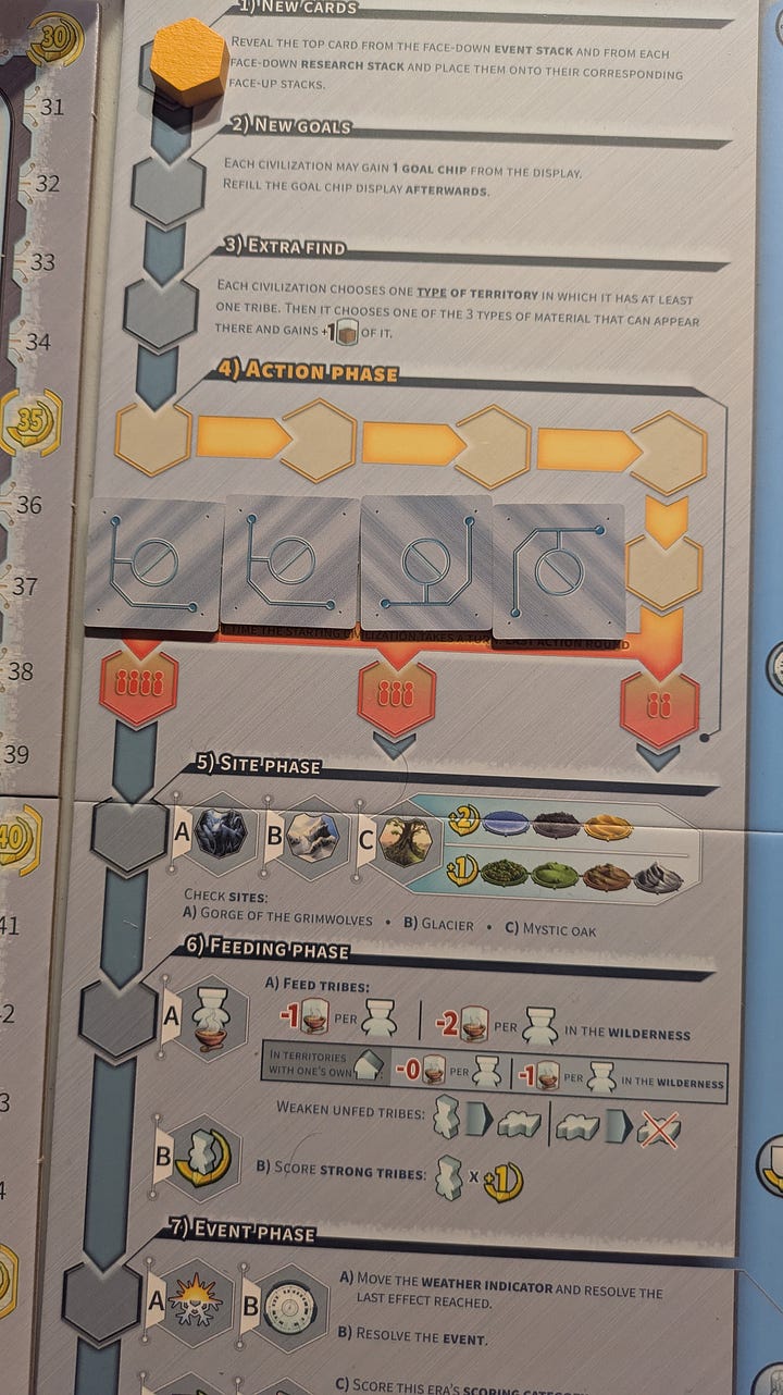 It's easy to overlook certain aspects while playing—I’ve sometimes forgotten to resolve an event card for the era or missed the chance to build a farm to feed my tribes. Or those goals that i choose initially which slipped my mind.