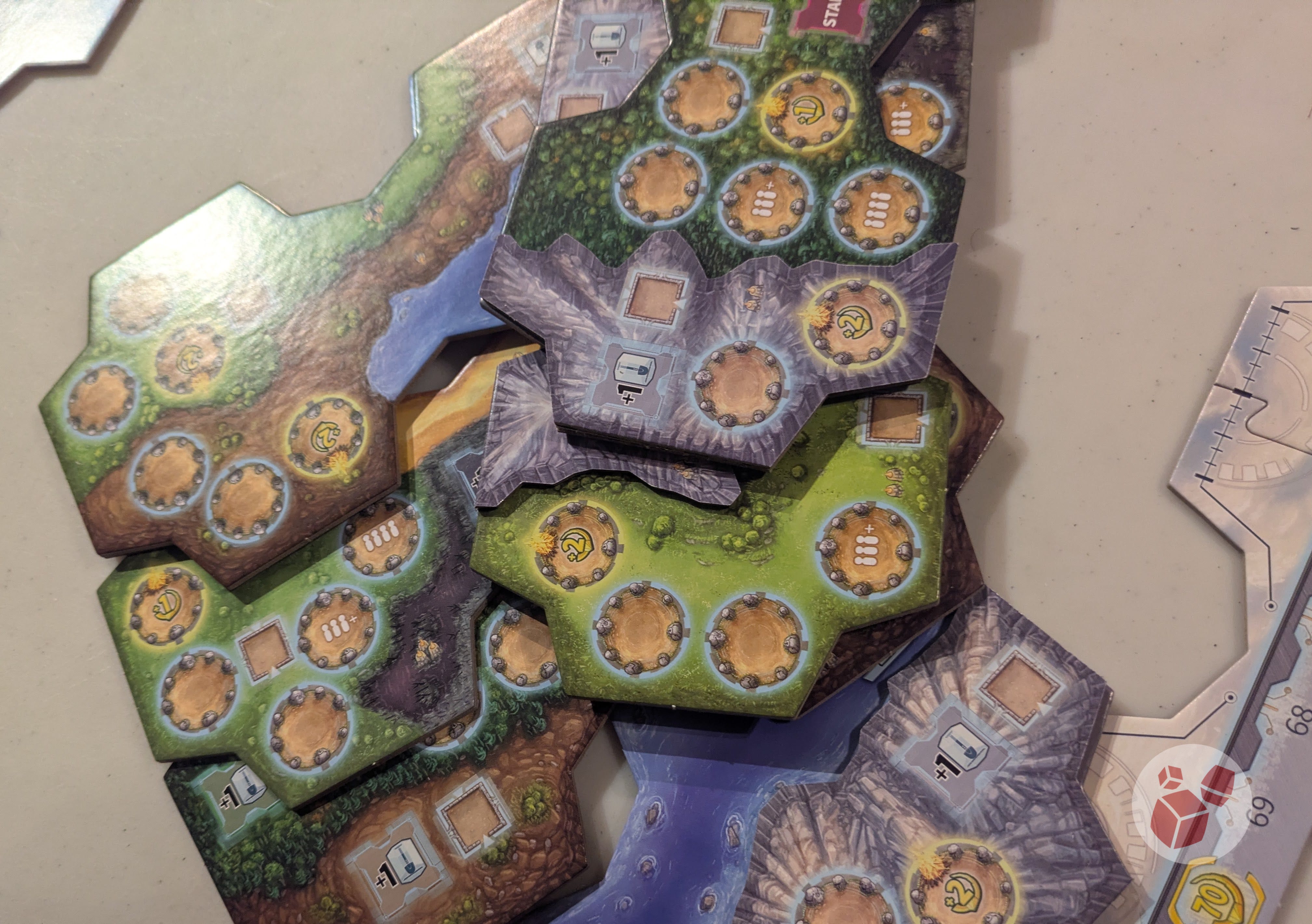 The material exploration tiles are shuffled and placed face down in specific territory areas. As you become more familiar with the game, you'll know these materials and exploration tiles are out there—but you won't know exactly when or where they will appear.